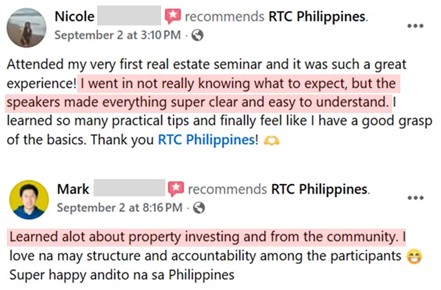 Today, RTC Philippines proudly leads the #1 Property Seminar in Southeast Asia, empowering Filipinos to gain knowledge, confidence, and network to build lasting wealth — one property at a time.